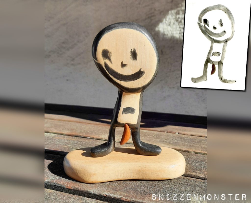 Heute zeig ich endlich mal wieder ein tolles kleines (und auch sehr nacktes) Kritzel-Männlein, eine Kinderzeichnung, die ich kürzlich für eine ganz liebe Kundin in Holz umsetzen durfte. Wie ja viele von Euch wissen, habe ich leider keine funktionierende Werkstatt mehr zur Verfügung, weshalb ich allzu selten nur irgendwie die Möglichkeit habe, solch einen Auftrag anzunehmen. Der Aufwand ist einfach zu groß und das Wetter muss passen und und und…