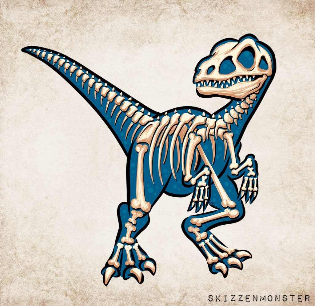Viel Gekritzel hin und her, am Ende hab ich diesen Knochen-Raptor in Action gezeichnet, der mir ganz gut gefällt. Jetzt bin ich gespannt, wie mein Kleiner reagiert… ?