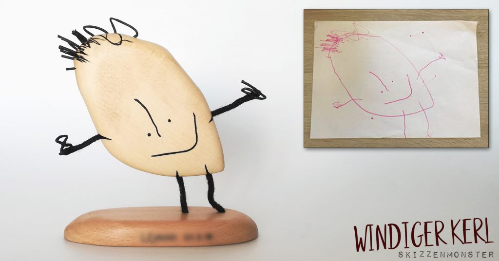 Dieser schick schiefe „windige“ Kerl darf sich jetzt zu dem Skizzenmonster der großen Schwester gesellen. Es freut mich immer sehr, wenn es solch einen Zuwachs in einer Familie gibt, wenn die kleinen Kunstwerke der kleinen Künstler als Skulpturen verewigt ihren ganz besonderen Platz bekommen ?